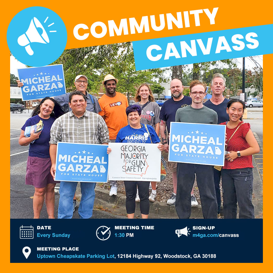 Come knock on doors of voters in Cobb and Cherokee counties for Micheal Garza (GA House D-46) and JD Jordan (GA Senate D-56) as we look to engage voters ahead of the November election in two of the most competitive state legislative races in Georgia. We’ll have lists of persuadable voters as well as lists of strong Democrats depending on your comfort level with knocking on doors.